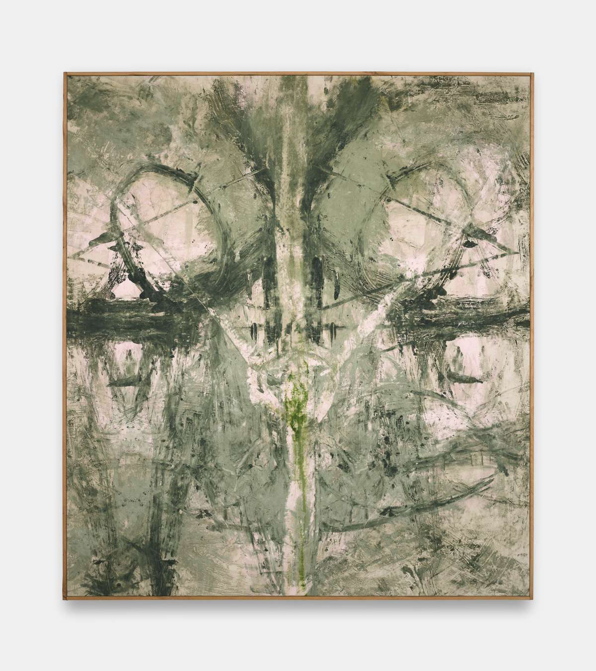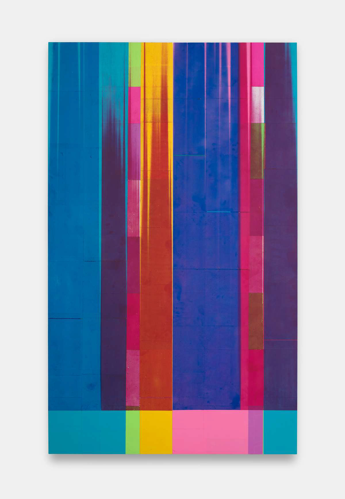 Oil, spray paint, lacquer, olive oil and chlorine on canvas
