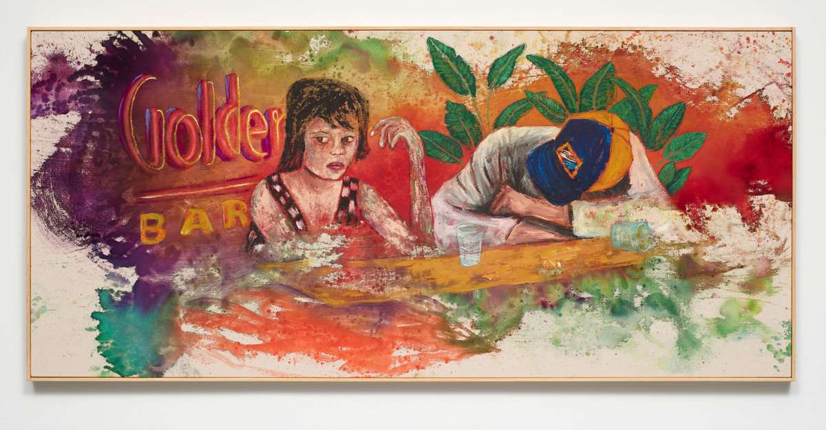 acrylic, oil, spray paint, oil bar and oil pastel on canvas