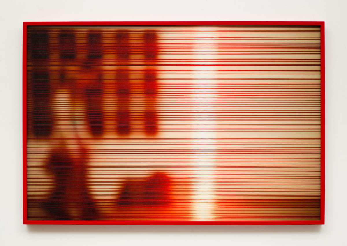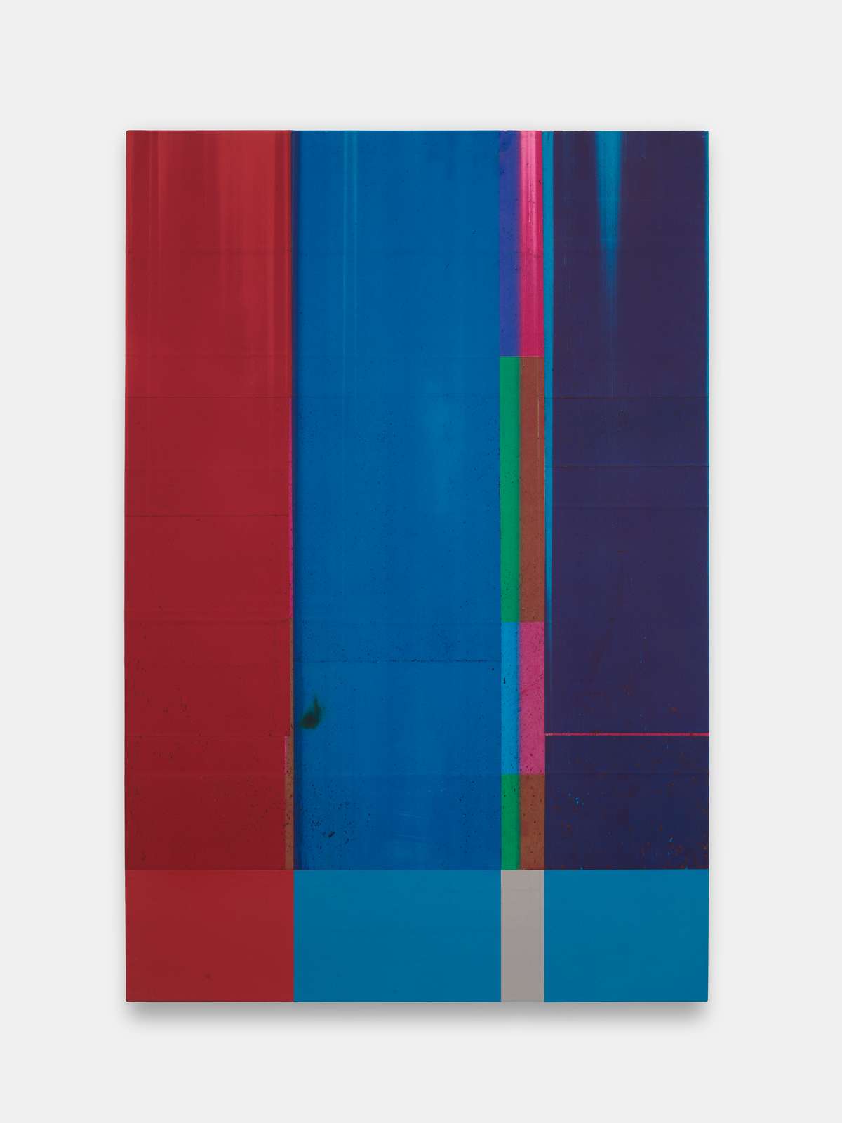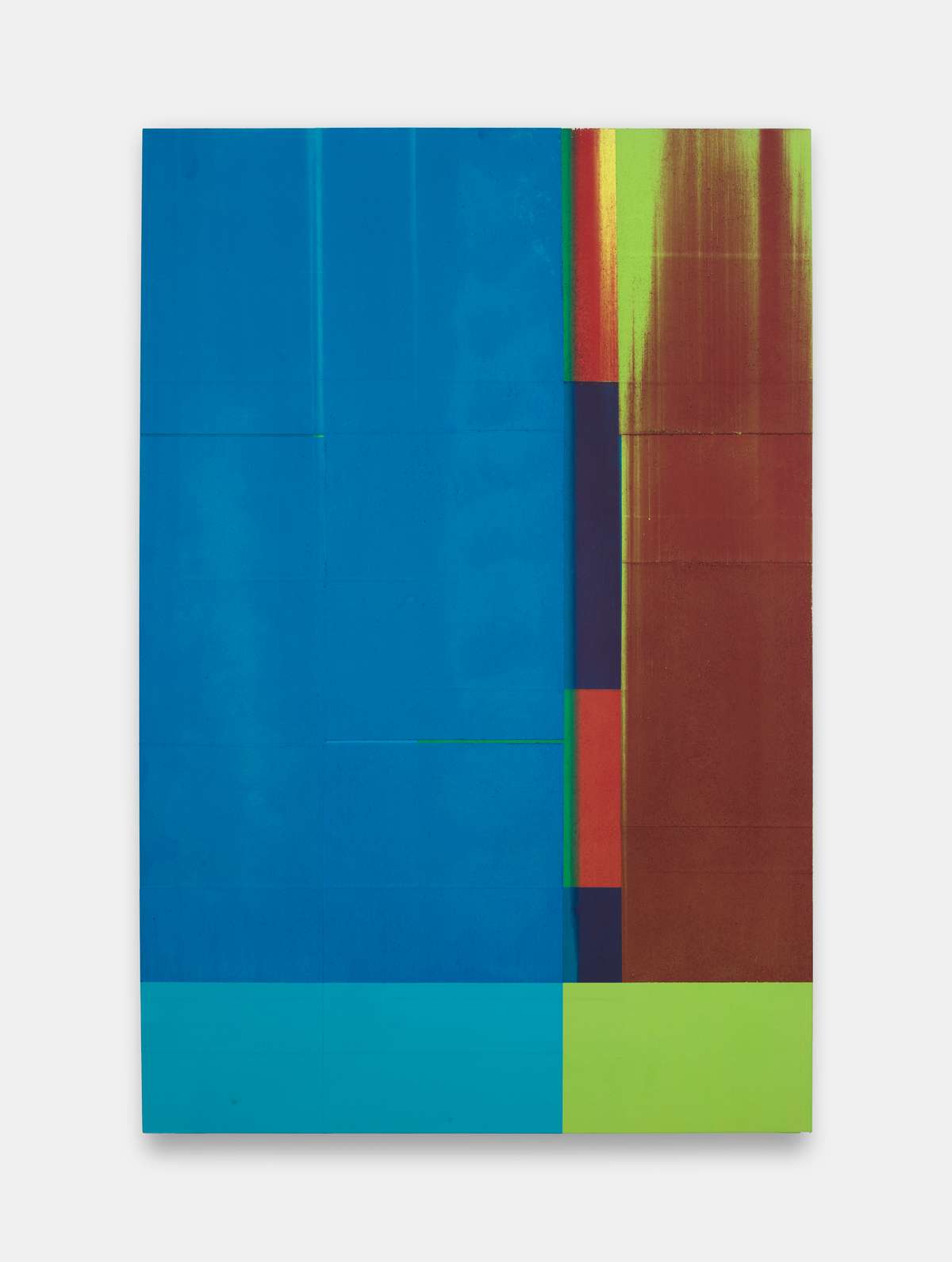 Flashe, gouache, and emulsified gesso on linen/canvas blend over aluminium strainer