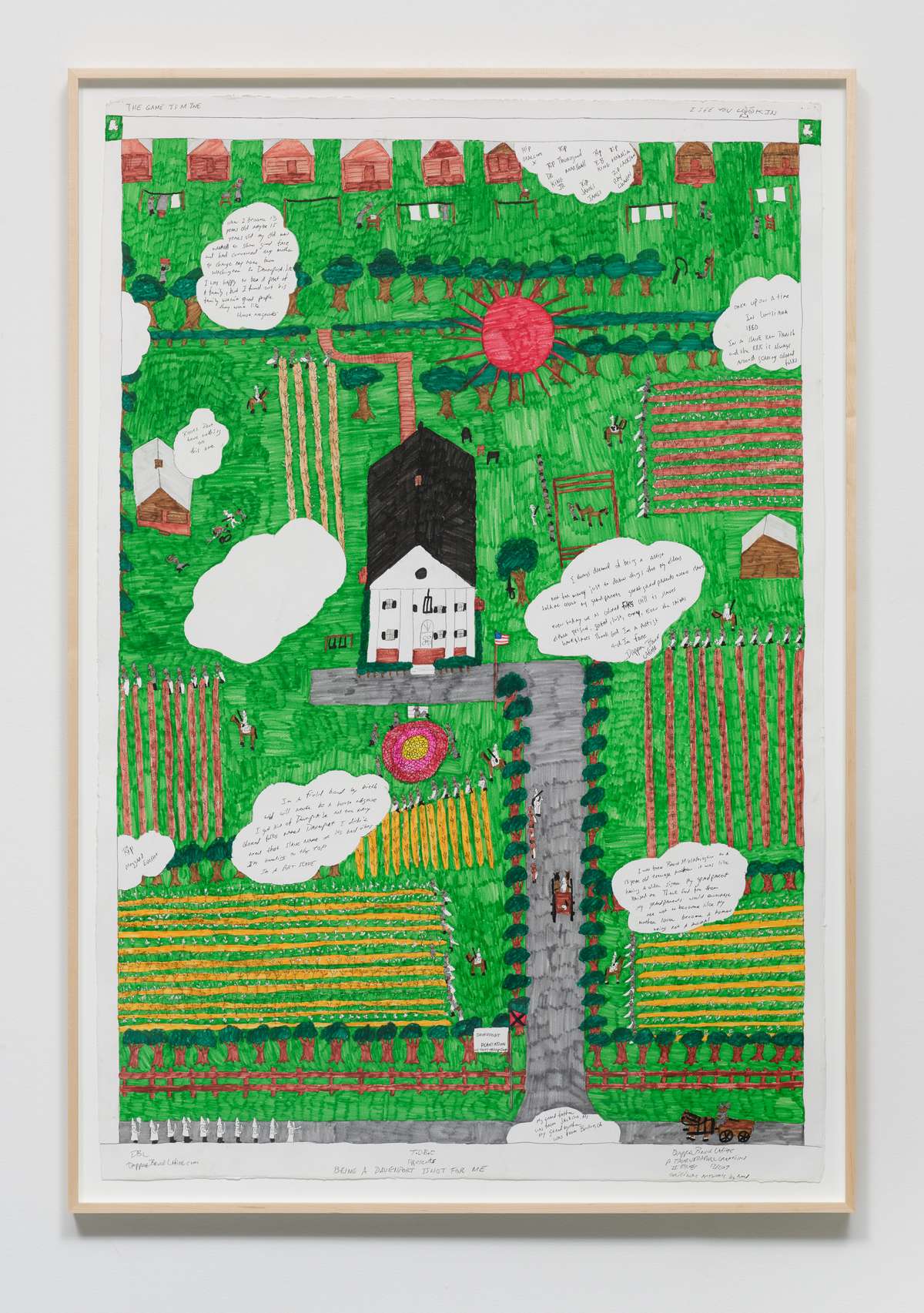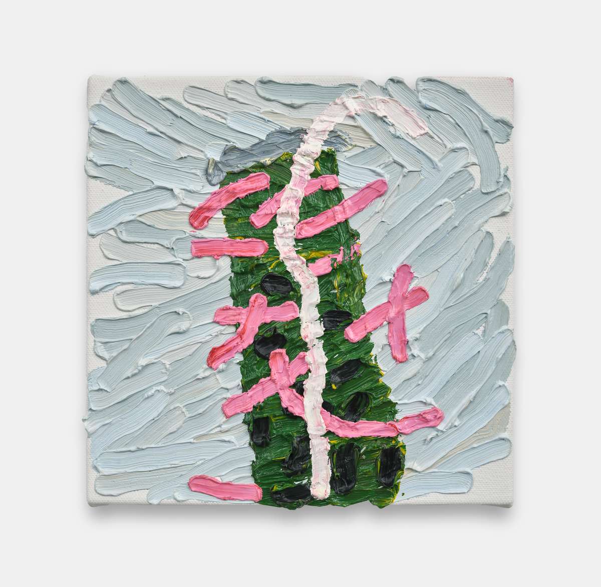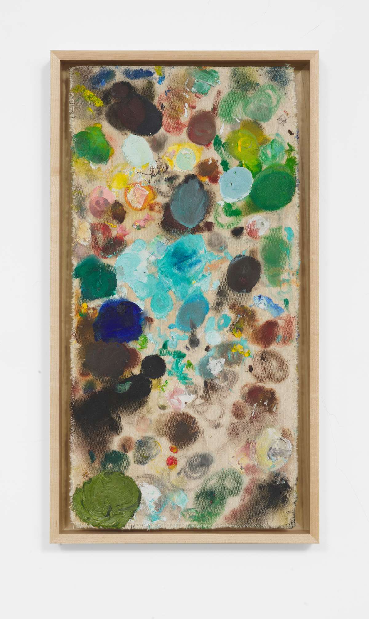 Flashe, gouache, and emulsified gesso on linen/canvas blend over wood panel