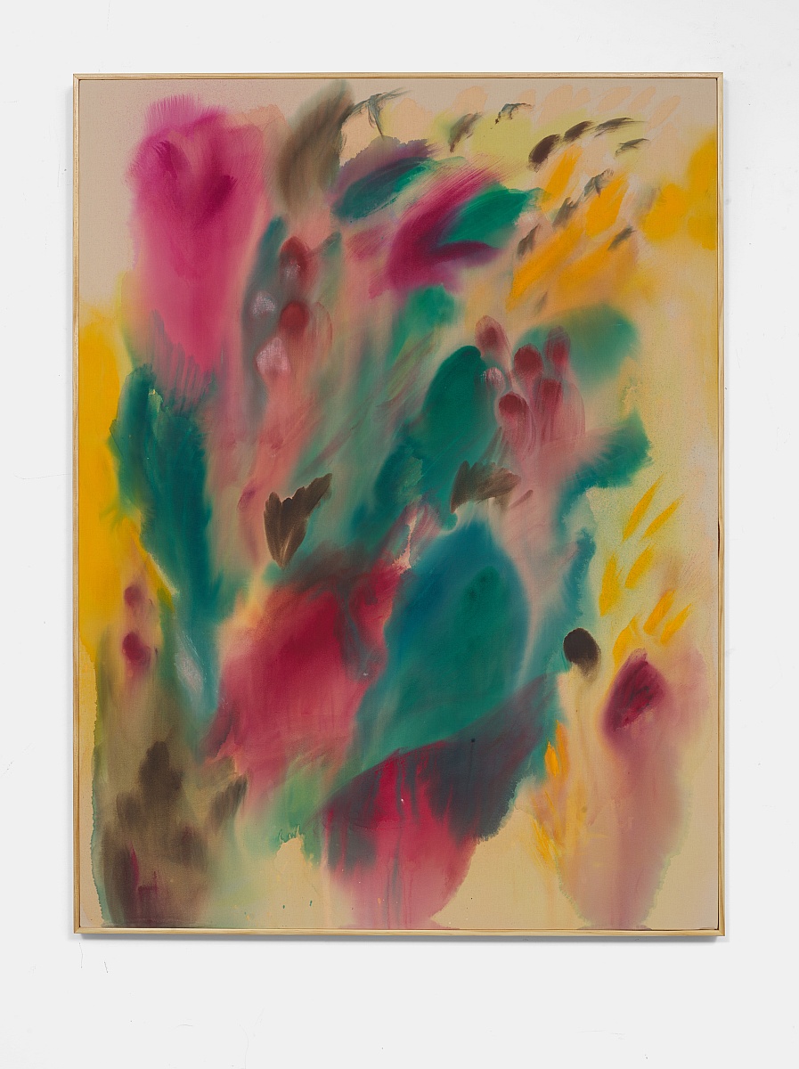 Marc Horowitz O make me a mask and a wall to shut from your spies, 2019 Watercolor, enamel spray paint, oil, oil stick, charcoal on canvas 60h x 48w in 152.40h x 121.92w cm