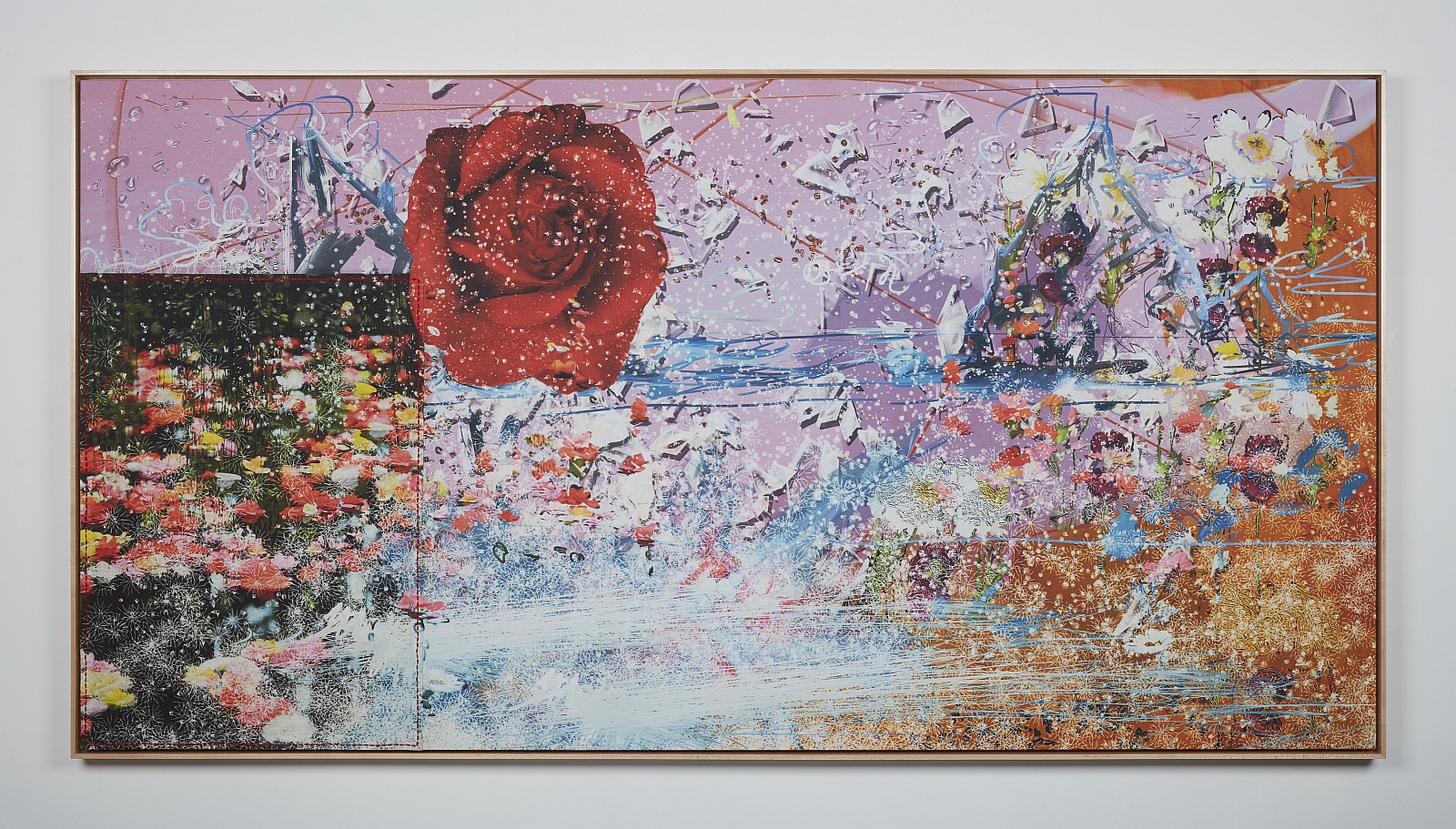 Petra Cortright 1485-1603_“3000 mm kaporus”_68HC70, 2018 Digital painting on gloss paper, face mounted 59.50h x 80.25w in 151.13h x 203.84w cm