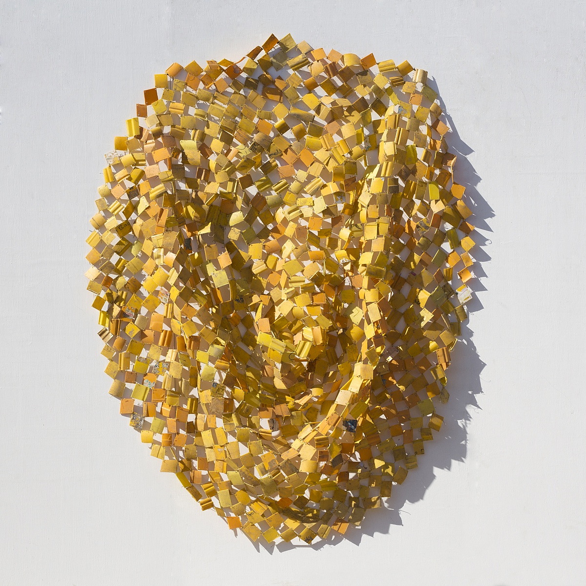 Serge Attukwei Clottey Mother’s thought, 2023 Plastics and copper wire 89h x 90w in 226.06h x 228.60w cm