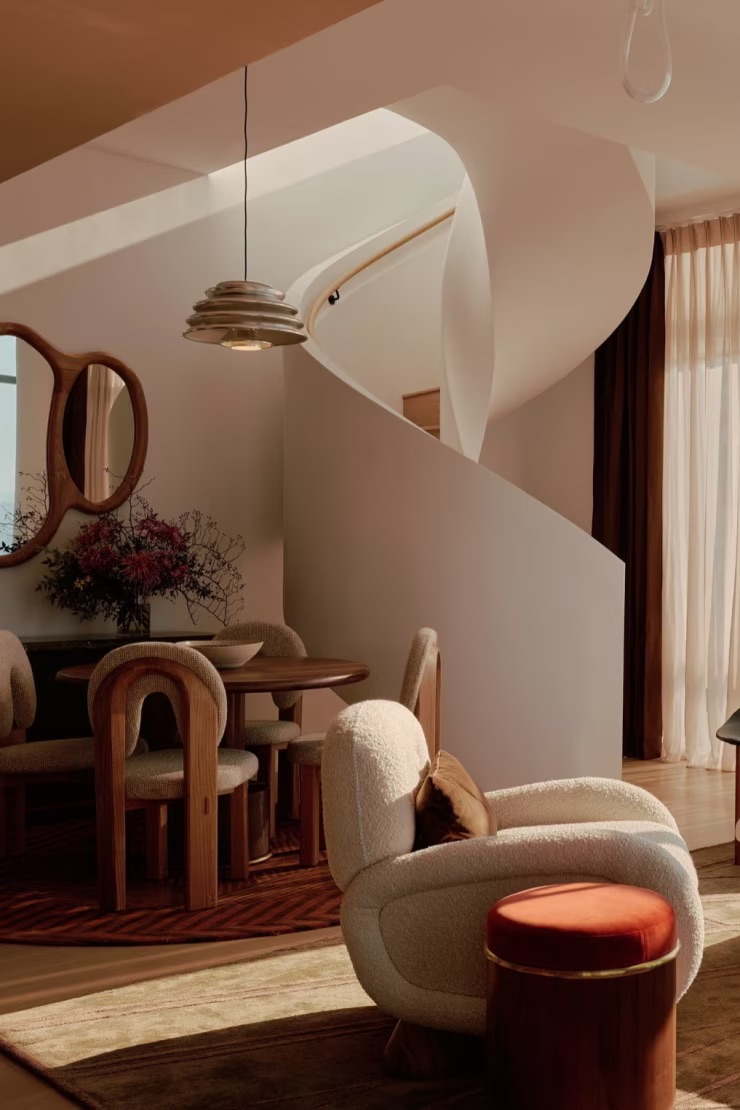 For designers, the challenge is to create a space that feels like a home while still appealing to a range of possible buyers. “We try and imagine the characters that are going to live there, but there’s got to be some thread of universal appeal,” says Morey-Burrows. In StudioMorey’s OWO design, which is intended to be bought “as seen”, the artwork, furniture and objects are selected from independent boutiques and galleries to evoke a collection that has been carefully formed over time. “We wanted it to feel like a family home.”